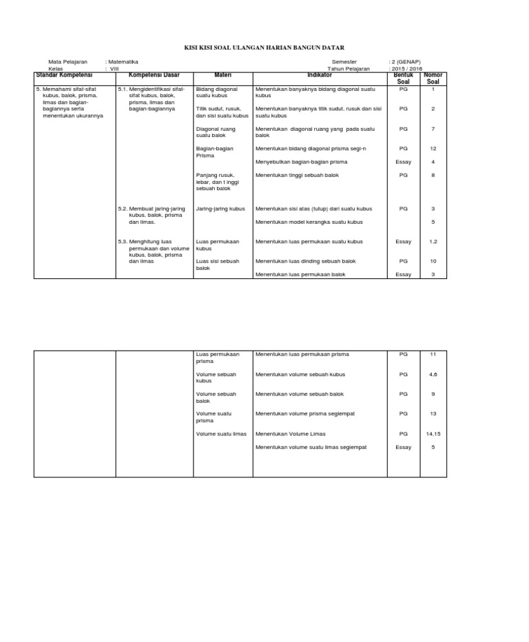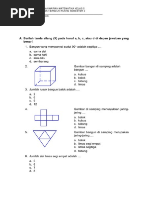 Kunci jawaban soal ulangan harian matematika. Soal ulangan kelas 5 matematika jaring jaring kubus dan balok. Kubus dan balok pada tingkat perguruan tinggi kubus adalah prisma tegak khusus yang mana semua sisinya dibatasi oleh persegikubus disebut juga hexaeder. Anda bisa membukanya melalui laman berikut: Luas alas prisma tersebut adalah 27 cm².