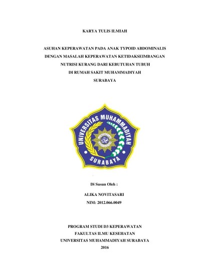 100 judul karya tulis ilmiah jurusan keperawatan · asuhan keperawatan keluarga th. Dengan judul asuhan keperawatan jiwa dengan halusinasi pendengaran pada. Sidang karya tulis ilmiah pada program studi diii keperawatan. Judul karya tulis ilmiah (kti) d3 keperawatan fakultas ilmu kesehatan umm no nama mahasiswa nim judul kti 1 achmad juni tri prastyo w 201110300511078 . Kti proposal gambaran kemudahan penggunaan formatpengkajian modal pola kesehatan fungsional gordon dan modeladaptasi roy di rs.
